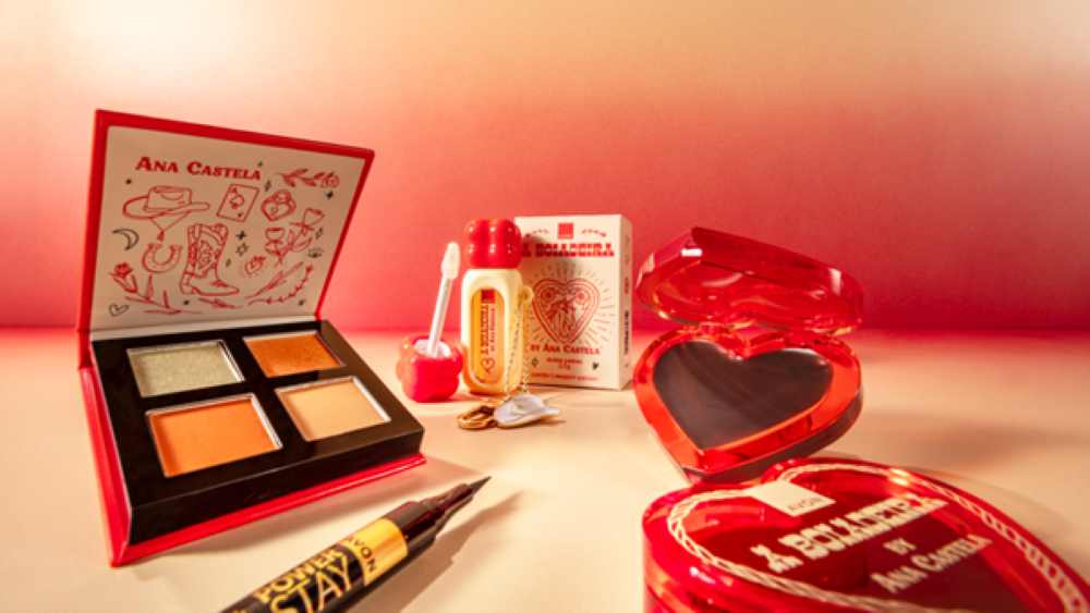 A nova linha chamada “A Boiadeira by Ana Castela’’ chega em edição limitada e é composta por quatro itens queridinhos da artista: um gloss labial holográfico com case de silicone que pode ser usado como chaveiro, além de contar com um pingente exclusivo inspirado no universo country, um blush cremoso preto que se adapta ao pH da pele, revelando um tom rosado exclusivo em cada pessoa, uma paleta de sombras com 4 tons, matte e metalizados, perfeitas para criar desde looks leves até produções dignas de palco; e uma caneta delineadora preta de alta precisão com duração de até 24 horas.