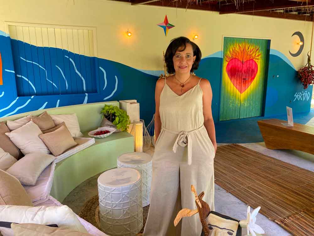 Arquiteta convidou a artista Julia Nogueira, criadora do ateliê Sertão Encantado, para fazer mural na fachada do bangalô Anunciação, que vai receber celebridades na Praia de Carneiros