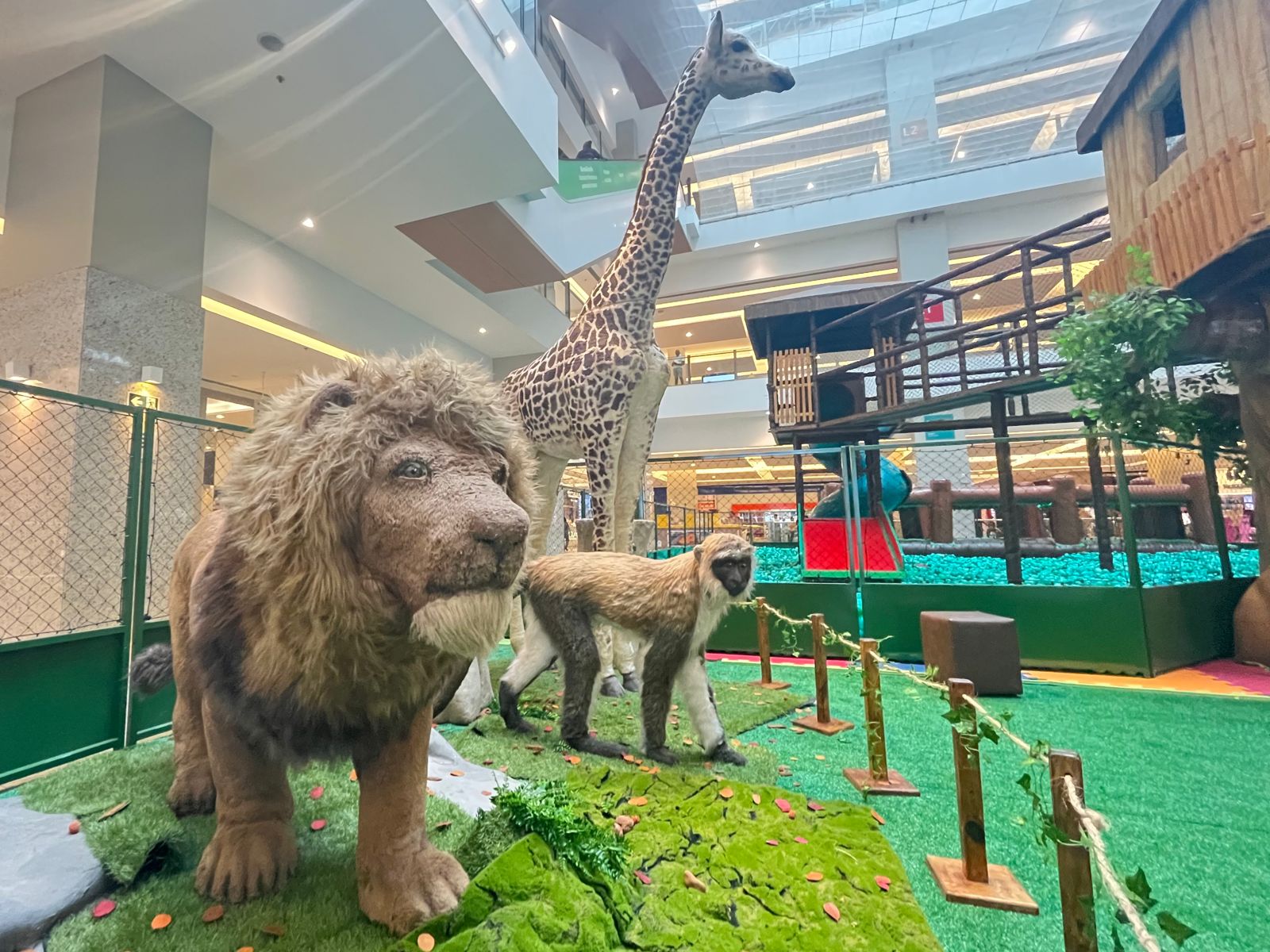 A atração conta ainda com réplicas em tamanho real de animais selvagens como leão, zebra, girafa, macaco e suricato. Podem brincar crianças com idades entre dois e 12 anos. O regulamento completo está disponível no local.