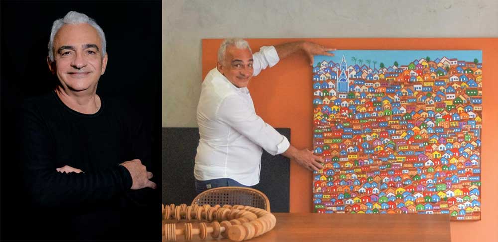 Com tantos afazeres nos trabalhos, após a aposentadoria e passar por problemas de saúde, ganhou telas para pintar, pois aquela atividade iria tanto aliviar o stress de tratamentos pesados quanto dedicar-se a uma atividade em que já mostrara talento. Em plena pandemia voltou-se para que as telas iniciando uma série de pinturas que evocavam os lugares conhecidos e saudosos da sua vida. Para o período conturbado da pandemia, fez um quadro para sua companheira de vida, retratando o Morro da Conceição com destaque para a igreja de sua santa de devoção. E aí as ideias foram brotando, a necessidade de colocar nas telas foi tão grande que ele começou a usar placas cortadas em MDF, fornecidas pelo marceneiro que trabalhava numa reforma na sua casa. E de lá começaram a surgir quadros que coincidentemente sempre foram para pessoas que entendiam significados de seus próprios sonhos e que eram confirmados pelas telas. Como o quadro Jardim Secreto do Poço da Panela, que ao ser entregue a dona, trouxe a ela a expressão da sua própria superação de vida. Como também o quadro Casa de Branca Dias, que foi recebido pela dona como confirmação de sua paixão por estudar a história dos Judeus em Pernambuco, que vinha sendo deixada de lado ao longo do tempo. Ou despertar o desejo por uma pessoa de um quadro que já tinha dono com os seus detalhes, e um em especial tornava-se “libertador”, por ter uma menina empinando pipa no quadro Visão Ampliada do Morro da Conceição, que era um sonho de criança participar desta brincadeira vetada pelo pai por ser “brincadeira de menino”. Em cada quadro a riqueza de detalhes cotidianos, fáceis de visualizarmos e que levam a esta sensação de despertar memórias longínquas, saudosas e que trazem a felicidade ao vê-las retratadas de forma tão simples. Assim é a obra de Arnóbio Escorel, usando a técnica do NAIF, deixa transpirar as suas emoções através de cada pincelada, cada cor, sensibilizando a todos com suas cenas simplórias que contem a verdade da beleza na vida das pessoas.