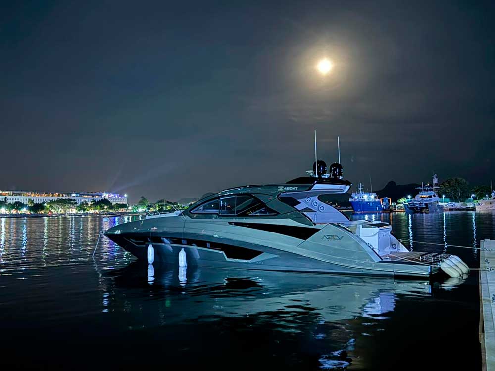 Neste ano, o estaleiro AZOV apresenta o Z480HT4, uma embarcação de 48 pés com um calado de apenas 70 cm, projetada para eficiência em diversas condições marítimas. O modelo é reconhecido por sua habilidade em navegar tanto em águas profundas quanto rasas.