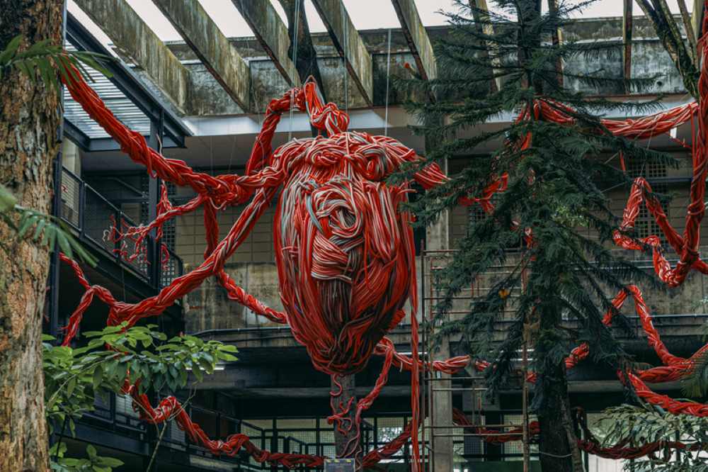 “Visceral” é uma instalação em forma de um enorme coração com artérias que se conectam ao espaço expositivo. Ela propõe uma metáfora de transformar a cidade em um organismo vivo, com veias que carregam histórias, corpos e emoções. Fruto de um processo coletivo e transdisciplinar, a obra nasceu durante uma disciplina de Tridimensionalidade, cresceu e deu origem ao Coletivo e à exposição.