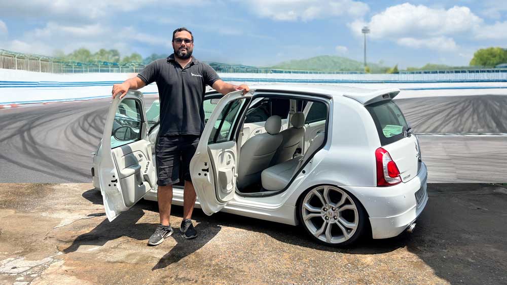 É nesse cenário que surge a história de Filipe e do seu Clio nada comum. Comprado totalmente original, ele foi transformado em um projeto único que chama atenção não apenas pela suspensão a ar ou pelas rodas esportivas, mas também por carregar um body kit raro, digno da versão GT-Line — aquela que a Renault vendeu só na Argentina, em pouco mais de 500 unidades. Filipe brinca que agora existe a “unidade número 581”.