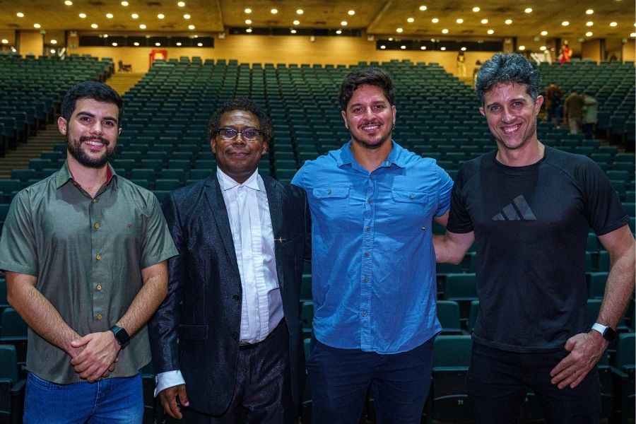 SOCIAL TERRA MAGAZINE – Representantes do Pernambuco Centro de Convenções (CECON) acompanharam o Concerto Natal Solidário realizado em parceria com o Projeto Espiral. Estiveram presentes o coordenador operacional Felipe Tizey e os produtores Yuri Galvão e Iris Machado. O concerto ocorreu no dia 11 de dezembro, no Teatro Guararapes, reunindo a Orquestra Filarmônica de Pernambuco, o Coral Infantojuvenil do Projeto Espiral e o Coral de Câmara do IMIF, sob direção musical do maestro Israel de França. O programa contou com a participação dos solistas Marrom Brasileiro, Ed Carlos e Clara Oliveira, além do Maestro Ademir Araújo, que integraram o elenco musical da apresentação.