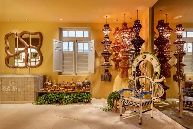 A versatilidade dos espelhos VIVIX também se revela em outras propostas da mostra. No Pátio dos Leões – Peugeot + Pernambuco, assinado por Fernanda Pontes e Madu Batista, da Duna Arquitetura, o produto ganha um papel de conexão entre passado e presente. O projeto nasce do encontro entre tradição e contemporaneidade, celebrando a memória cultural de Pernambuco. Pensando nisso, foi utilizado o espelho VIVIX Spelia Cinza, que reflete o teto original preservado do casarão, valorizando a história do edifício e criando uma atmosfera de reverência ao passado. Sua superfície neutra e sofisticada amplia a percepção do espaço e intensifica a luz natural. O resultado é um cenário de equilíbrio entre memória e inovação, onde o espelho atua como elemento funcional e inspirador, conectando o tempo e a forma com elegância.