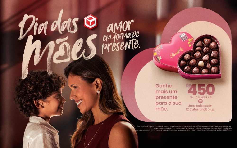 A partir da próxima quinta-feira (1º), quem for ao mall poderá garantir uma caixa de trufas da Lindt, referência mundial em chocolates premium, como um segundo presente para sua mãe. Para participar da campanha, basta reunir R$ 450 em notas fiscais cumulativas de compras realizadas nas lojas do Shopping Recife e cadastrá-las no site promoção.shoppingrecife.com.br. Após isso, os clientes podem se dirigir ao ponto de trocas, localizado na Praça de Eventos, e retirar o brinde com o QR Code gerado, durante o horário de funcionamento do shopping.