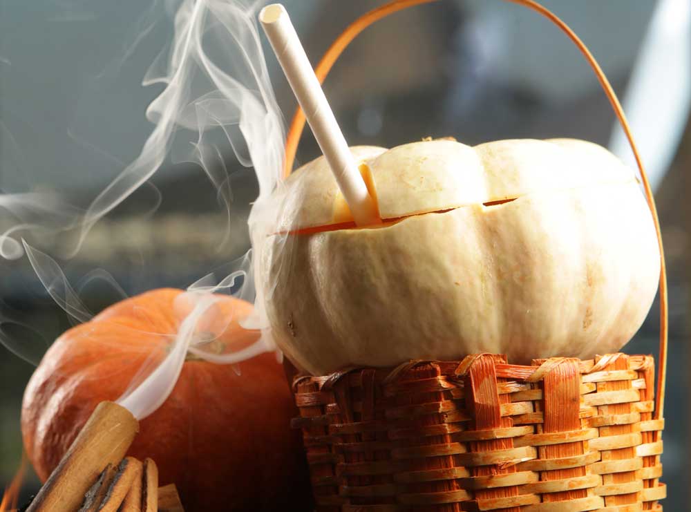 – Cachaça Magnífica Carvalho em infusão de canela, cynar, abóbora chinesa e purê de coco.