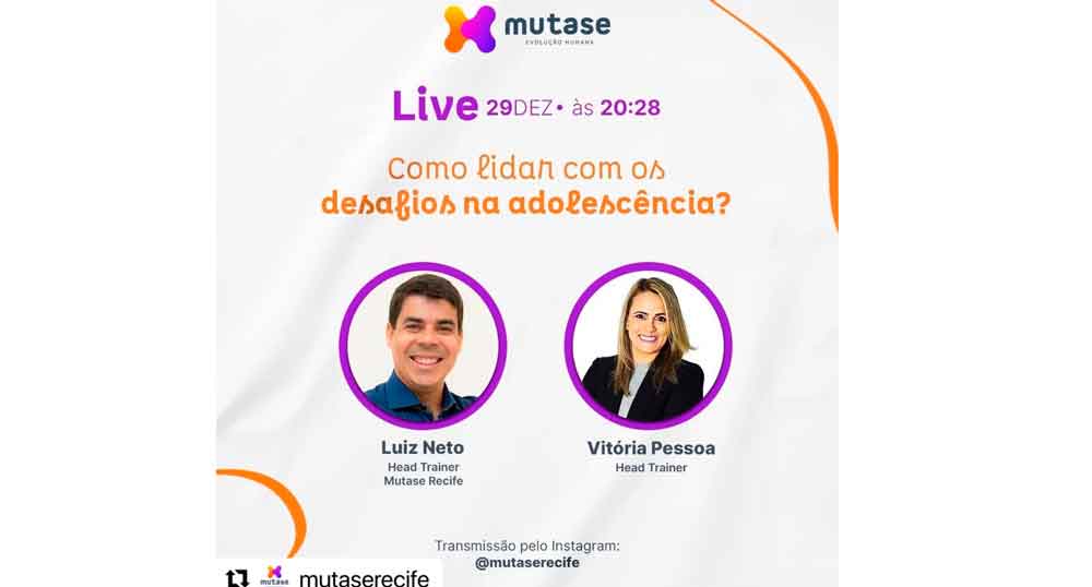 Hoje à noite, os Head Trainers, Luiz Neto e Vitória Pessoa vão debater sobre os desafios da adolescência e como lidar com as emoções dos jovens nessa fase.