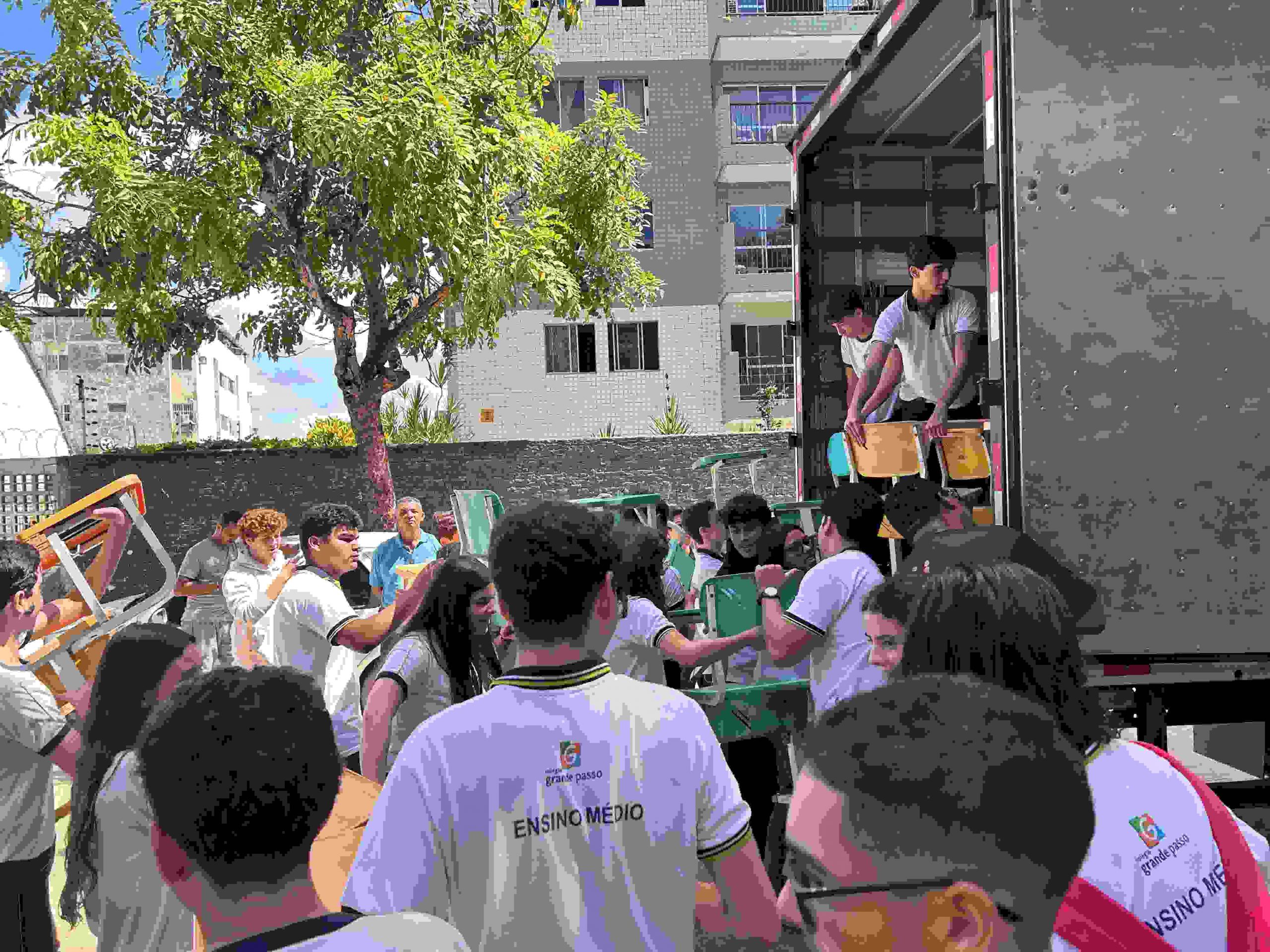 A manhã desta quinta-feira (16) foi marcada solidariedade e cidadania. Os estudantes do ensino médio do Grupo Educacional Primeiro Passo e Grande Passo, em Boa Viagem, uniram-se em uma ação para doar bancas escolares à Associação dos Educadores das Escolas Comunitárias de Pernambuco (AEEC/PE). A iniciativa teve como objetivo melhorar as condições de aprendizado nas escolas comunitárias da região.