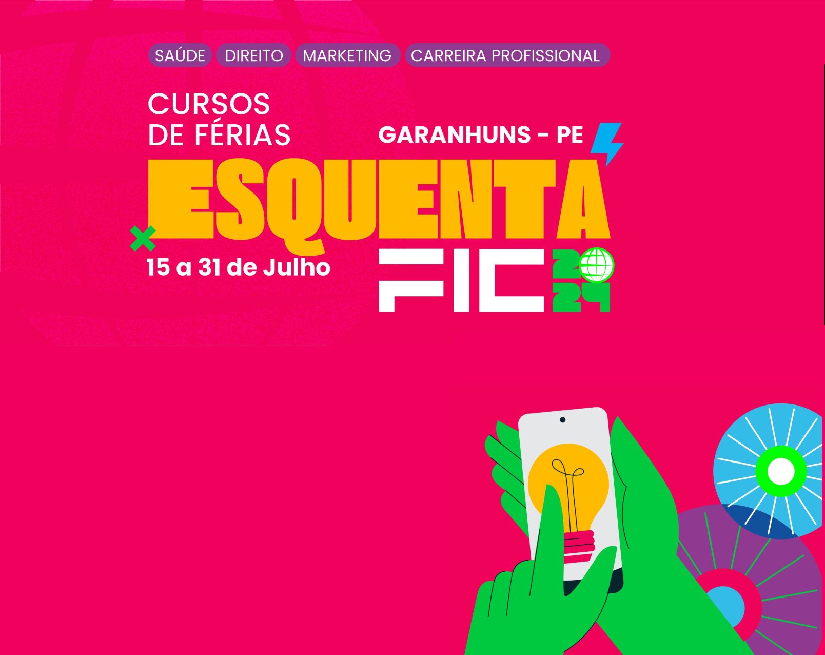 A Faculdade Integrada CETE (FIC) está promovendo os Cursos de Férias Esquenta FIC 2024, uma iniciativa que acontece de 15 a 31 de julho em Garanhuns. Com uma programação diversificada nas áreas de Saúde, Direito, Marketing e Carreira Profissional, o evento destaca-se por oferecer atividades gratuitas, porém com vagas limitadas, abertas não apenas para estudantes da FIC, mas também para interessados de outras instituições de ensino superior da região.