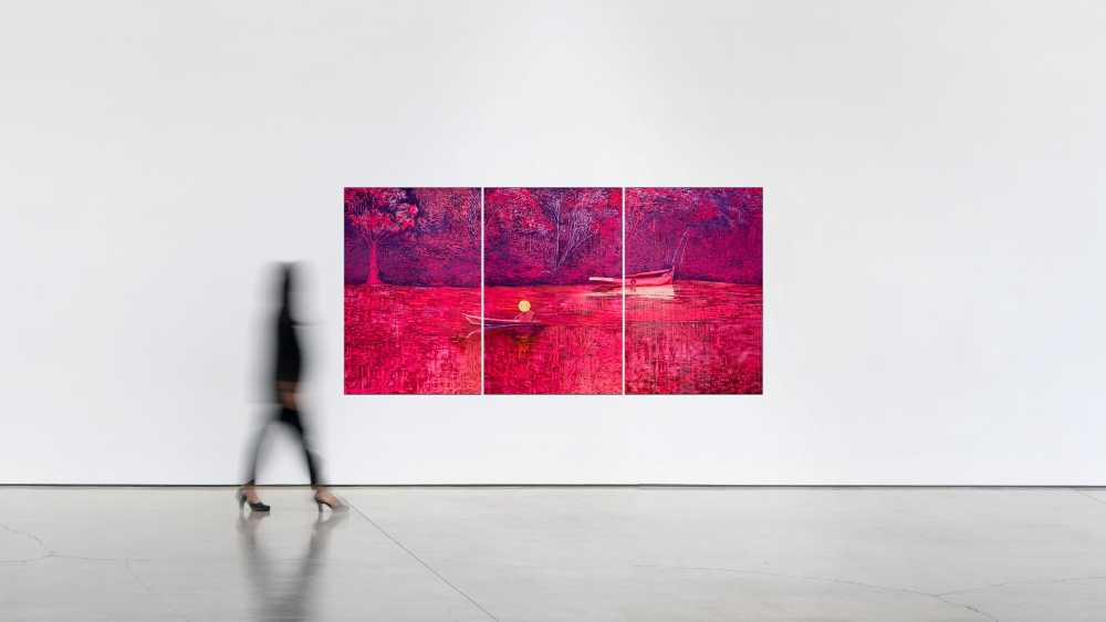 Observador atento do seu entorno, não só físico, mas também metafísico, Bruno Vilela desenvolve um trabalho que, mais do que representar, busca interpretar e ressignificar seus objetos, sujeitos e pesquisa. Seu trabalho permeia fronteiras entre a pintura, a fotografia, o audiovisual e o desenho, sempre as tensionando. Em trânsito, imerge e se inspira em diferentes culturas, colocando-as em diálogo com suas referências e experiências. Exemplo dessa abertura para o outro e o novo são as obras da série Eco Reflexo, presentes na nova exposição. Inspiradas na viagem do artista à Amazônia, onde por 20 dias viveu, junto com seu irmão Márcio Vilela, também artista, em uma comunidade ribeirinha às margens do Rio Negro.