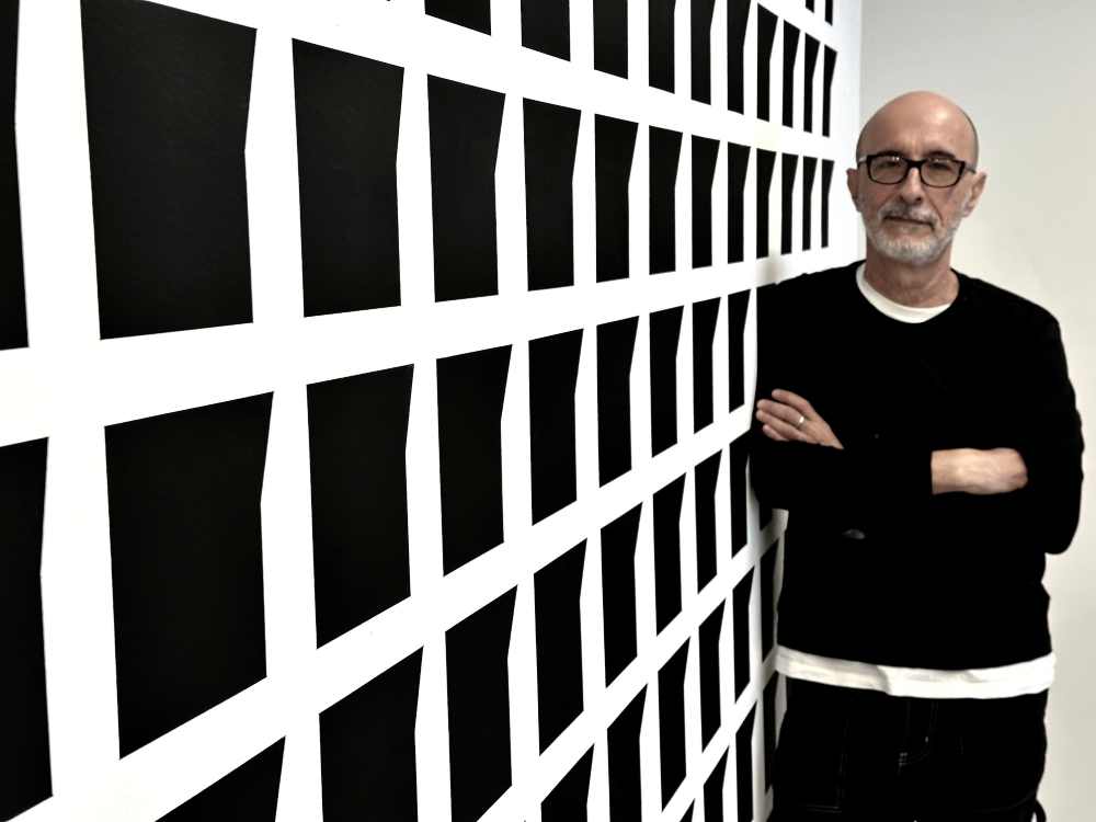 Denise também ressalta que Hildebrando se aproxima das premissas dos artistas cinéticos, interessados em instaurar uma nova relação com o espectador. “As frestas, os recortes e as geometrias criadas por ele evocam ilusões de volume, de deslocamento e de instabilidade visual. A obra deixa de ser um objeto a ser contemplado e se torna um campo a ser atravessado. O espectador, com seu corpo em movimento, ativa a obra, a faz acontecer, entra em estado de atenção plena, e atravessa a quinta dimensão – a do tempo do movimento e do silêncio da luz”, ressalta.