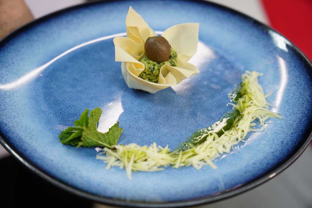 Para abrir a degustação, o coquetel “Myrtos”, idealizado por Adriano Santos e alunos do curso de Bartender, traz uma mistura de sabores com curaçau blue, licor de pêssego, leite de coco e água com gás. Em seguida, o menu traz a entrada “Olímpia”, uma massa filo com creme de espinafre e especiarias, azeitona kalamate, queijo feta e parmesão ralado regado com azeite aromatizado. A receita é preparada pelo chef Alberico Ferreira e alunos do curso de Cozinheiro.