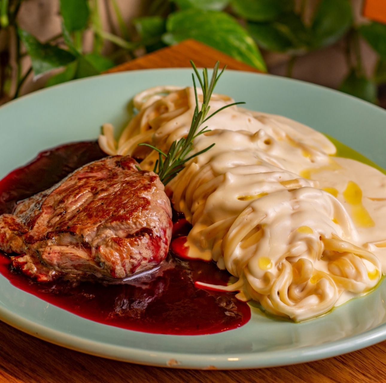 “Quando Marina me procurou, ela pediu que eu pensasse em pratos mais elaborados e que ao mesmo tempo se adequassem no fluxo da cafeteria. Então mergulhei em montar pratos que fossem ricos no preparo, com muita personalidade e utilizando também dos ingredientes locais”, explica o chef Marcilio Cavalcante. Entre as opções do menu do almoço executivo, estão o camarão grelhado com redução de laranja, acompanhado de arroz 7 grãos, gergelim, castanha, cenoura, brócolis e couve-flor; o risotto siciliano de salmão; e o linguini ao molho Alfredo Trufado acompanhado de medalhão de filé no vinho tinto.