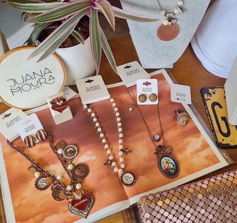 É visível a elegância das combinações que são feitas com acessórios que possuem símbolos religiosos, a exemplo da coleção Meu Santo é Forte, da designer Juana Moura, inspirada no sincretismo religioso. Uma coleção inédita pensada para as pessoas que gostam de sempre usar peças novas e exclusivas. Meu Santo é Forte tem características típicas de vários rituais, superstições e ideologias que vão figurar nas produções cotidianas e sociais.
