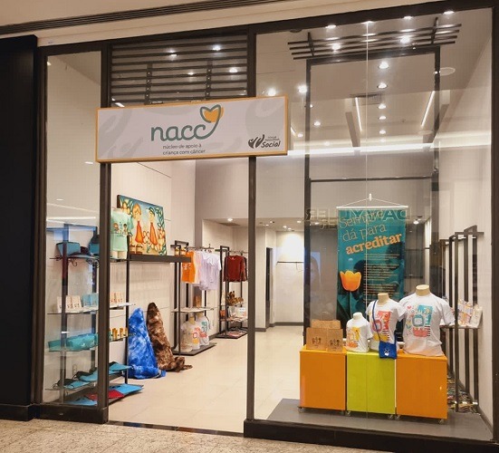 No espaço, estão sendo comercializados produtos institucionais do NACC, como estojos, bolsas, cadernos, camisetas, entre outros. Além disso, itens produzidos artesanalmente por voluntárias do NACC também estão à venda, como jogos de cama, lixeirinhas de carro, suplats, panos de prato, bolsas em crochet, biscoitos e mais. O Núcleo de Apoio à Criança com Câncer também levou para a loja alguns itens do seu bazar.