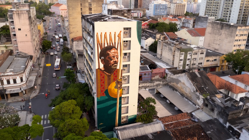 Iniciada em 28 de outubro e concluída em apenas dez dias, a obra de arte a céu aberto não é apenas uma expressão artística, mas também um marco na história da cidade e do Estado de Pernambuco. Esta é a primeira vez que uma obra dessa magnitude é dedicada ao único artista brasileiro a receber oito prêmios do Grammy e a conquistar o título de maior percussionista do mundo por oito vezes pela revista Down Beat. Às vésperas de completar 80 anos de legado, Naná Vasconcelos continua a ser uma figura inspiradora e influente no cenário artístico e musical.