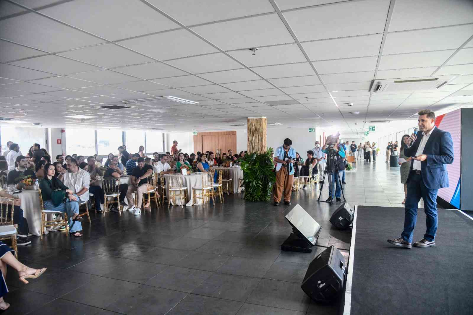 A gerente de negócios da TV Guararapes, Suelene Sá, fez a apresentação e detalhamento de todos os produtos comerciais da emissora. Ela falou das vantagens das marcas anunciarem na TV que mais cresce em Pernambuco e falou também das novidades para o próximo ano. “Esse ano, o São João e o Carnaval já foram sucesso de comercialização e, para 2026, tudo será ainda melhor. Teremos novidades nas transmissões do Galo da Madrugada e na cobertura da festa de São João. Muitas marcas já nos procuraram e fecharam parceiras”, contou Suelene.
