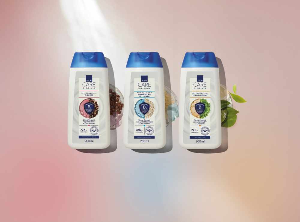 Os lançamentos vão além da hidratação, a linha possui três novos cremes que agirão nas necessidades específicas da pele no corpo, são eles: Loção Corporal Pele Nutrida + Firmeza, que potencializado pelos peptídeos e o óleo de café, melhora a elasticidade e promove a aparência de pele mais firme e saudável, a Loção Corporal Pele Nutrida + Tom Uniforme, que contém vitamina C com chá verde, potentes antioxidantes que suavizam as marcas irregulares da pele, além do Avon Care Derma + Nutrição Hidratação Intensa, que age na barreira protetora da pele, retendo a umidade para uma hidratação de longa duração.