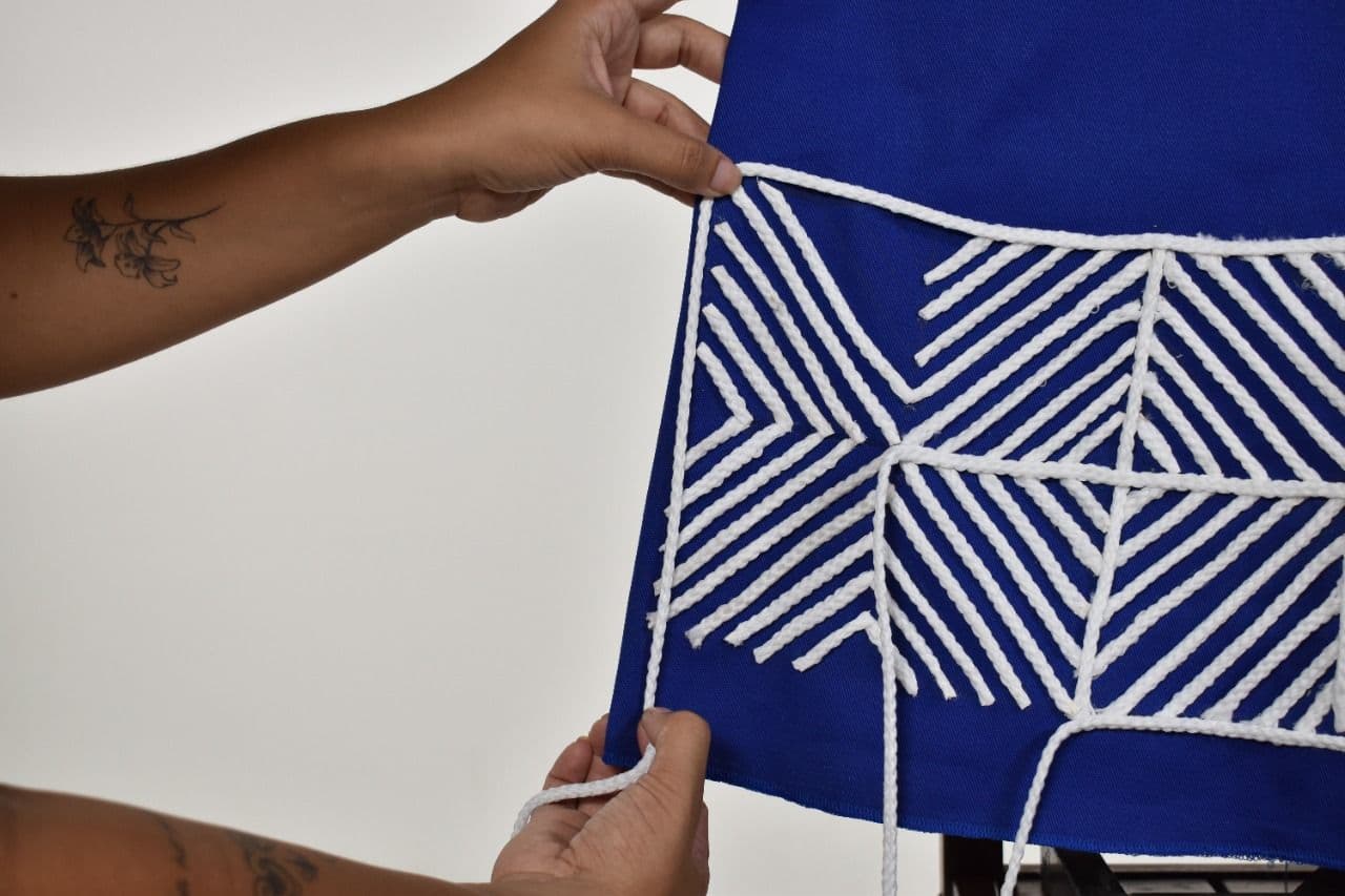 Para além das formas, cores e texturas, as obras alcançam voo por meio de tecidos escolhidos, resultado de um processo de upcycling de materiais de coleções já desfiladas pelos alunos da instituição em outras edições do projeto “Passarela Fenearte”. Do brim ao voal, passando pelo tafetá, a robustez do solo árido se mescla, de forma mágica, à leveza da poesia nordestina.