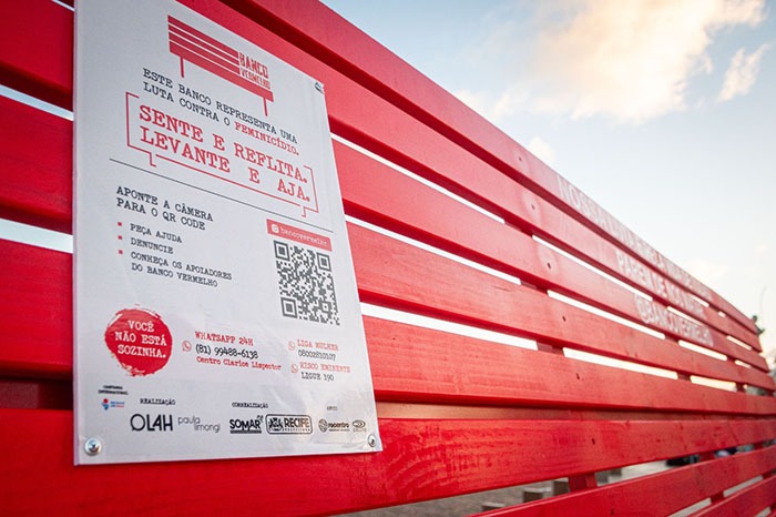 Manifesto de conscientização e combate ao feminicídio e à violência contra a mulher, o Instituto Banco Vermelho chegou ao Brasil em novembro de 2023. O projeto iniciou suas iniciativas no país por meio das instalações em espaços públicos no Recife-PE e, atualmente, contabiliza 25 unidades (bancos vermelhos), distribuídas em diversas regiões da capital pernambucana.