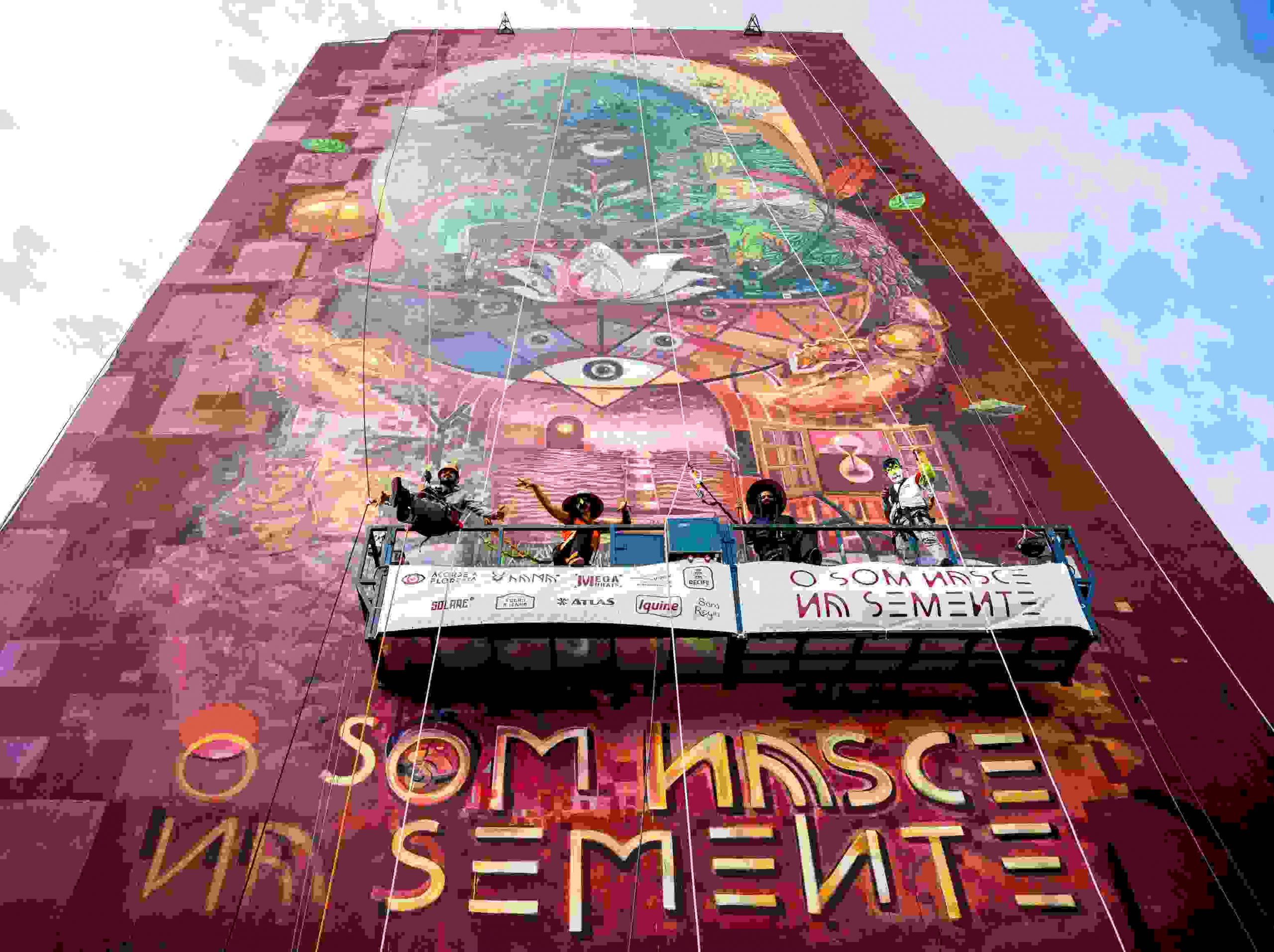 A capital pernambucana ganhou seu sétimo mega mural dentro do projeto “Recife Cidade da Música”. Proposto pela Prefeitura do Recife, por meio da Secretaria Executiva de Inovação Urbana (Seiurb), os mega murais têm a função de embelezar a cidade resgatando os principais expoentes culturais locais. O novo tema escolhido é “O Som Nasce Na Semente” e o local é o edifício Líbano (R. do Hospício, 841), no Bairro da Boa Vista, em frente ao Parque 13 de Maio. A arte possui apoio da Tintas Iquine, que cedeu todas as tintas necessárias para a realização do painel.