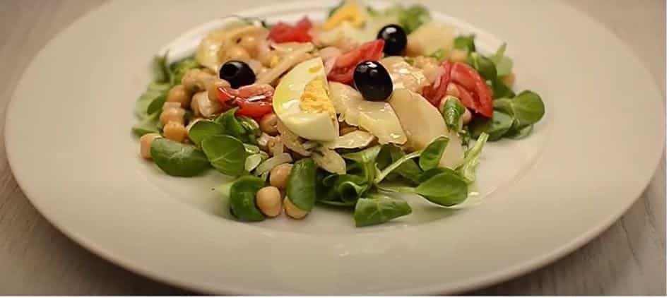 Salada de Bacalhau da Noruega com Grão de bico e Rúcula