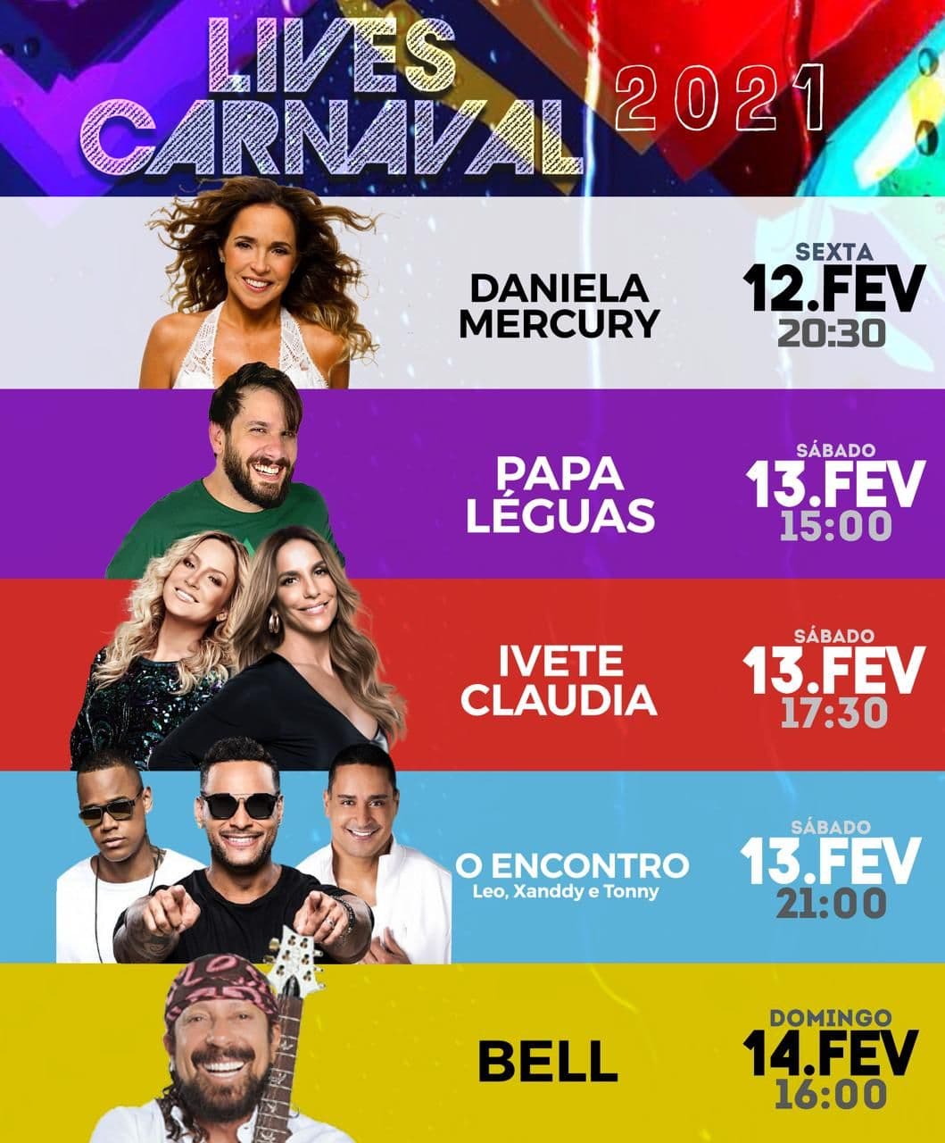 No sábado, as musas Ivete Sangalo e Claudia Leitte e O Encontro com Leo Santana, Xanddy Harmonia e Tonny Sales;