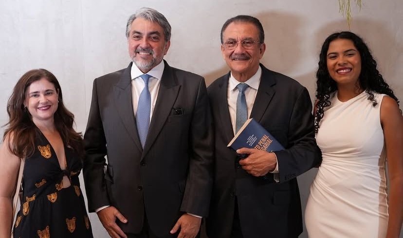 Os sócios do escritório Pires Advogados, Fernanda Barreto Campello (esquerda), Ivon Pires (segundo à direita) e a advogada Bruna Lima (direita) com Geilson Salomão, organizador do livro “Direito Penal Empresarial”, em João Pessoa, no lançamento da publicação à qual foram articulistas.