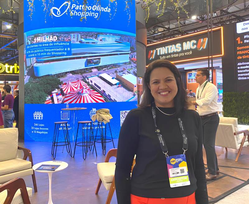 A superintendente do Shopping Patteo Olinda, Andreya Vila Verde, representando o centro de compras na ABF Franchising Expo 2025, em São Paulo.