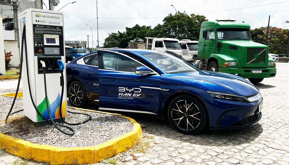 Começamos nossa jornada em Recife com o painel indicando uma autonomia de 510km, mesmo estando com 85% da bateria carregada. Nosso destino: o litoral da Paraíba. Embora tivéssemos autonomia mais do que suficiente para a viagem de ida e volta de 350km, optamos por fazer uma parada estratégica para recarga em João Pessoa. Não porque era necessário, mas para entender a experiência real de carregamento. Em 20 minutos, aproveitando um rápido café, o Han estava pronto para continuar a aventura.